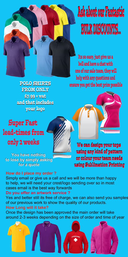On this page you find details about our high quality Sports tops, Scarves and other items to help promote your club